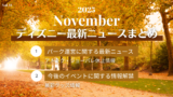 この記事では、今月発表のあった最新ニュースや最新のディズニー運営情報をお届けします。